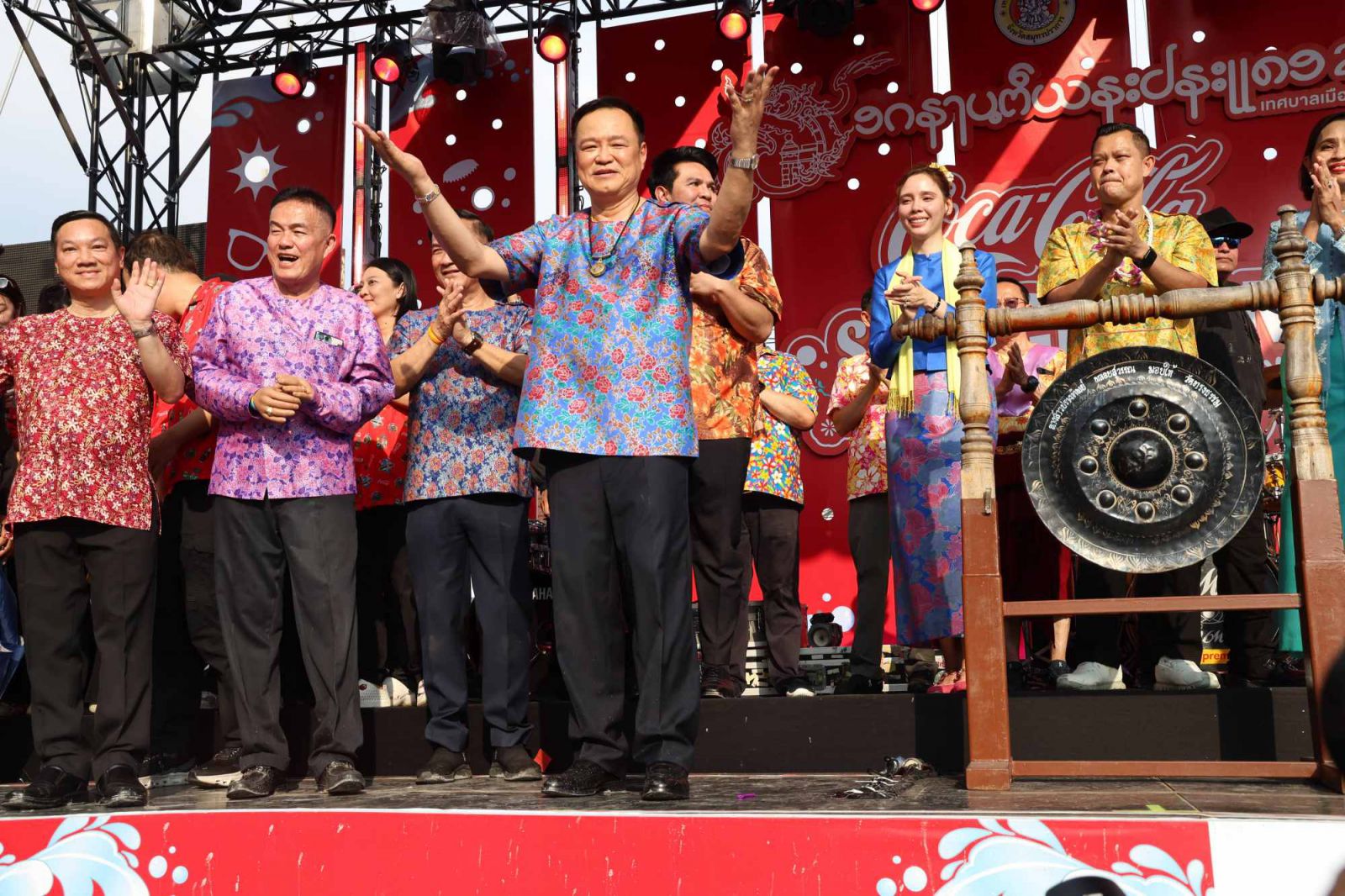 นายกรัฐมนตรีได้กล่าวเปิดงานแสดงความยินดีที่ได้มาร่วมงาน รู้สึกยินดีที่เห็นประชาชนเล่นน้ำด้วยความสนุกสนานตลอดสองข้างทาง รัฐบาลพร้อมให้การสนับสนุนงานประเพณีดีๆ เช่นนี้ เพื่อคงความเป็นเอกลักษณ์ พร้อมระบุด้วยรอยยิ้มว่า ดีใจที่สงกรานต์ยังไม่จบ เป็นพิธีปิดท้าย เป็นแบบอย่างของการรักษาวัฒนธรรมท้องถิ่นให้คงอยู่