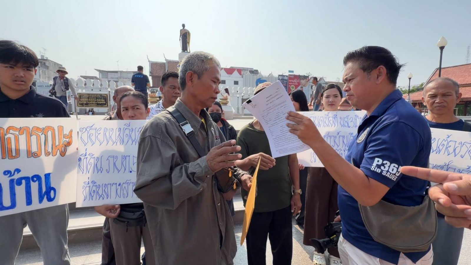ชาวบ้านภูหลวงถือป้ายประท้วงลานย่าโม ทวงคืน'ซอยขนมจีน'ร้องปปช.สอบรุกทาง