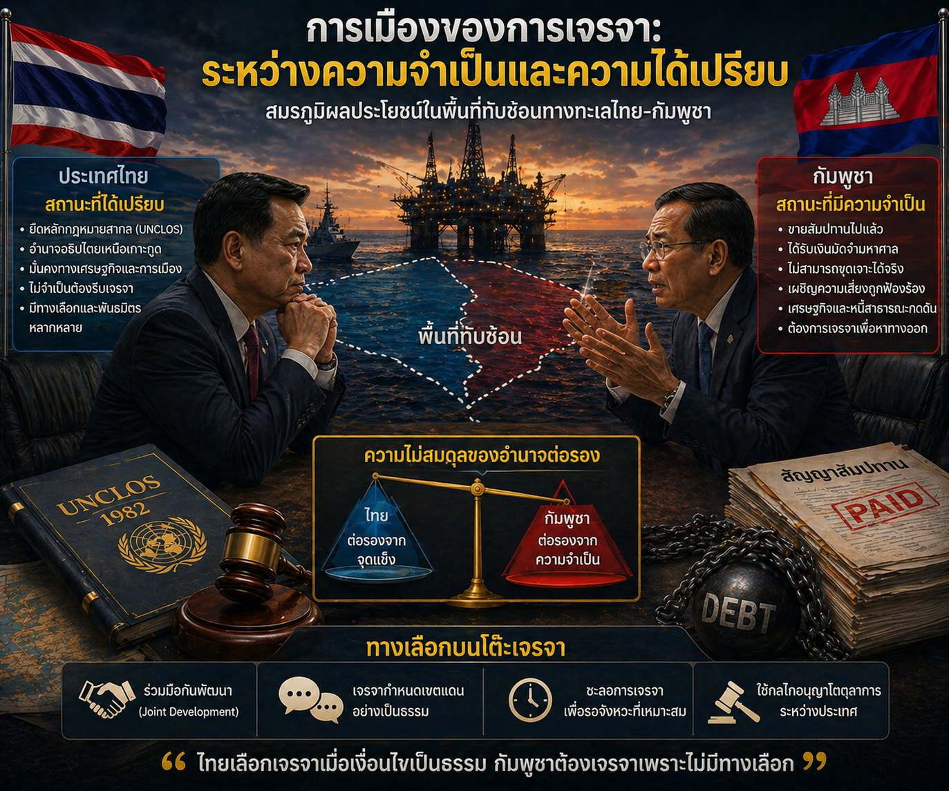 ในกรณีนี้ พื้นที่ทับซ้อนมิได้เป็นเพียงแหล่งพลังงาน หากแต่เป็น “สนามทดสอบ” ของความสามารถในการบริหารจัดการของรัฐ และความสามารถในการรักษาดุลยภาพระหว่างผลประโยชน์ทางเศรษฐกิจกับหลักกฎหมายระหว่างประเทศ