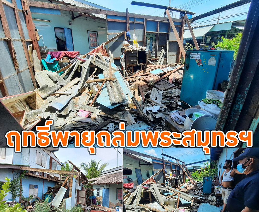 สมุทรปราการ-พายุฝนพัดถล่มพระสมุทรเจดีย์บ้านแม่ค้าขายอาหารตามสั่งถูกลมพัดพังเสียหาย