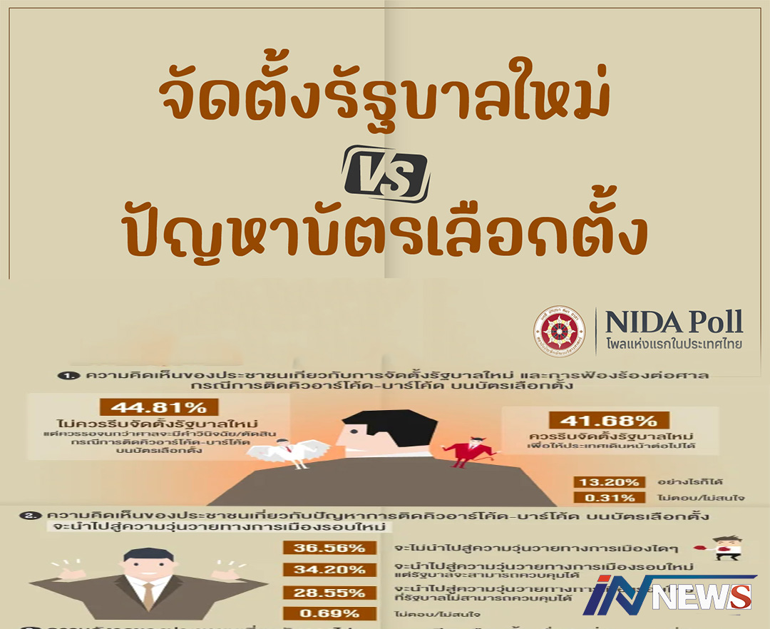 'จัดตั้งรัฐบาลใหม่VSปัญหาบัตรเลือกตั้ง' นิด้าโพลชี้อยากให้ชะลอจัดตั้งรัฐบาลใหม่