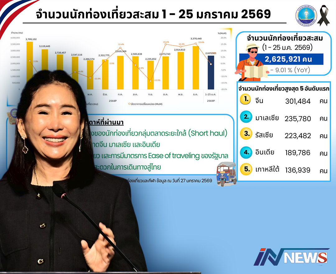 กรุงเทพฯ-เผยปัจจัยสำคัญในสถานการณ์การท่องเที่ยวช่วงวันที่ 19-25 มกราคม 2569 มีการฟื้นตัวด้านการเดินทางของนักท่องเที่ยวกล...