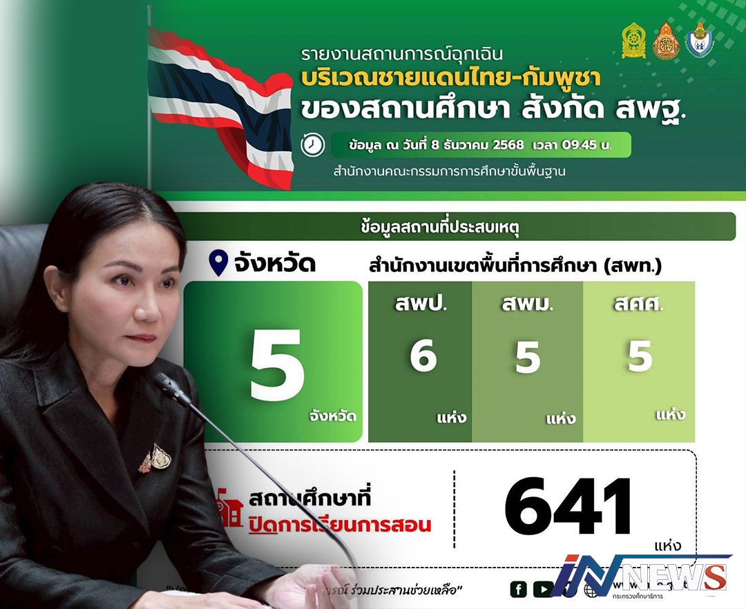 กรุงเทพฯ-“รมว.นฤมล” เผย สั่งปิดโรงเรียน 641 แห่งใน 5 จังหวัดชายแดนไทย-กัมพูชา ย้ำความปลอดภัยเด็ก-ครูต้องมาก่...
