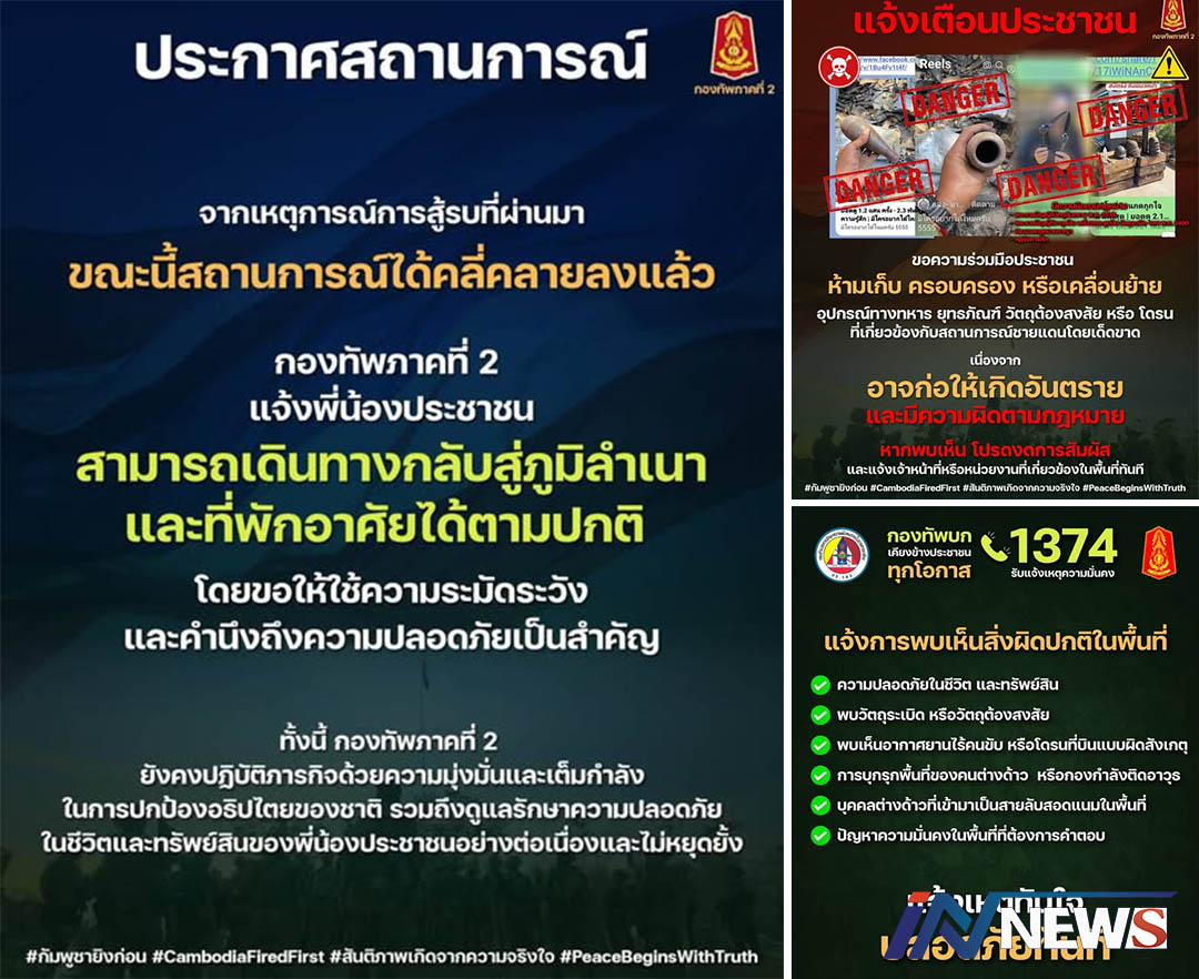 ผ่านไป1วันหลังหยุดยิงไทย-เขมรยังปกติ กองทัพภาค2อนุญาตปชช.กลับภูมิลำเนา