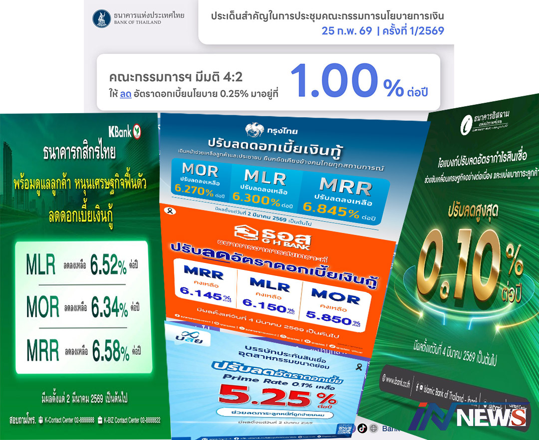 5สถาบันการเงินแห่ลดดอกเบี้ยตามกนง. จาก1.25เหลือ1%ต่อปีคาดฟื้นศก.ไทยได้
