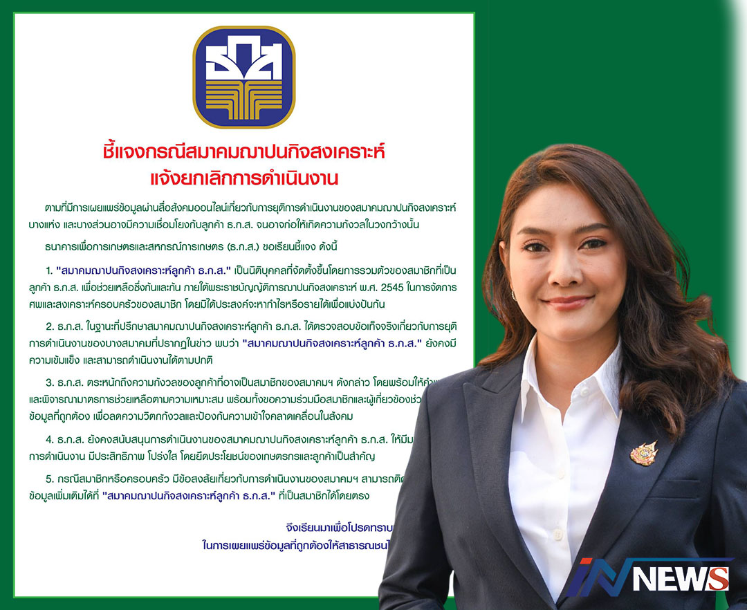 กรุงเทพฯ-“อัยรินทร์” แจง "สมาคมฌาปนกิจสงเคราะห์ลูกค้า ธ.ก.ส."มีความเข้มแข็ง ดำเนินการตามปกติ ขอลูก...