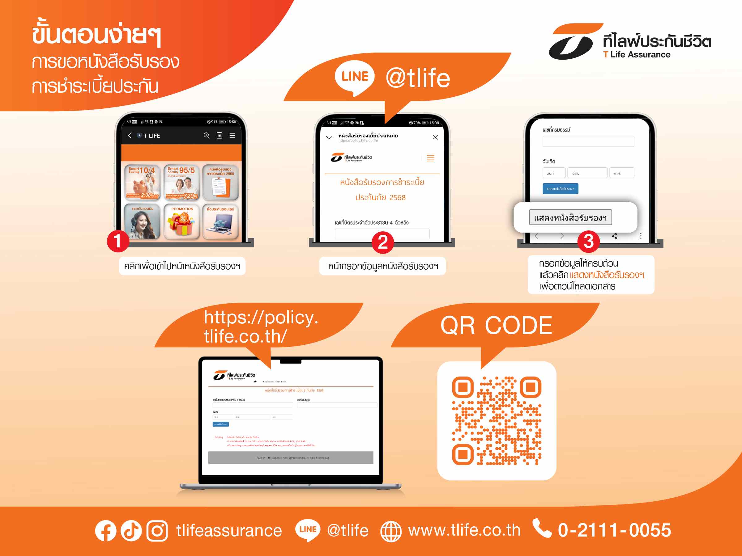 ลูกค้า'ที ไลฟ์'ดาวน์โหลดหนังสือรับรอง ชำระเบี้ยประกันภัยปี68ผ่าน2ช่องทาง