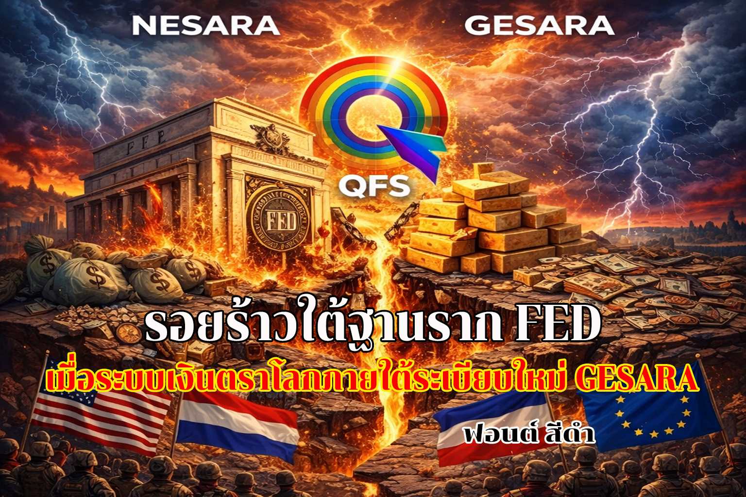 รอยร้าวใต้ฐานรากเฟด: เมื่อระบบเงินตราโลกภายใต้ระเบียบใหม่GESARA โดย: ฟอนต์ สีดำ