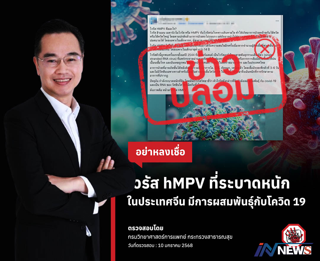 ดีอีเตือนข่าวปลอมอย่าแชร์ทำคนแตกตื่น 'ไวรัสhMPVผสมโควิด19ระบาดในจีน'