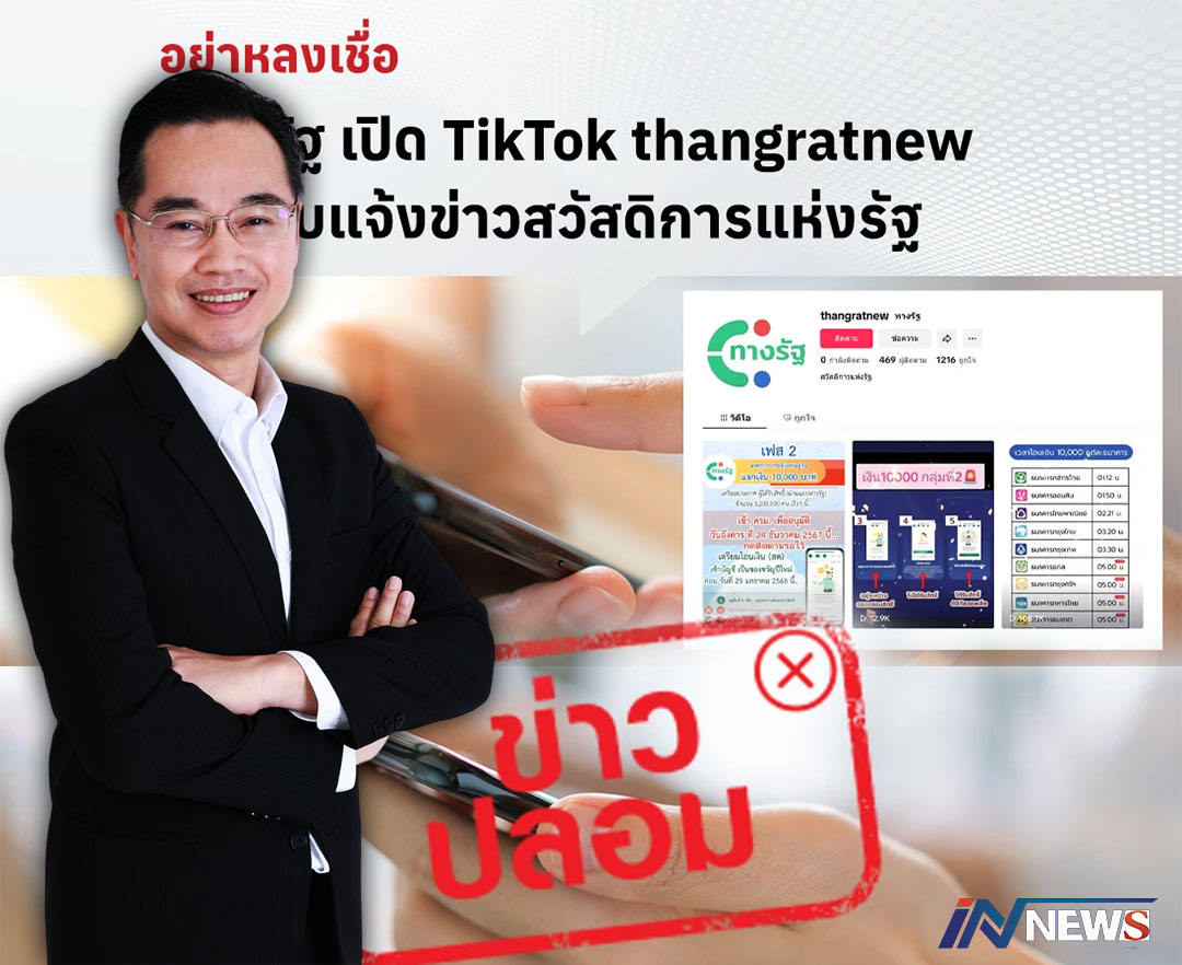 ดีอีเตือนภัยเพจปลอมแจ้งข่าวบัตรคนจน ผ่าน'ทางรัฐ เปิด TikTok thangratnew'