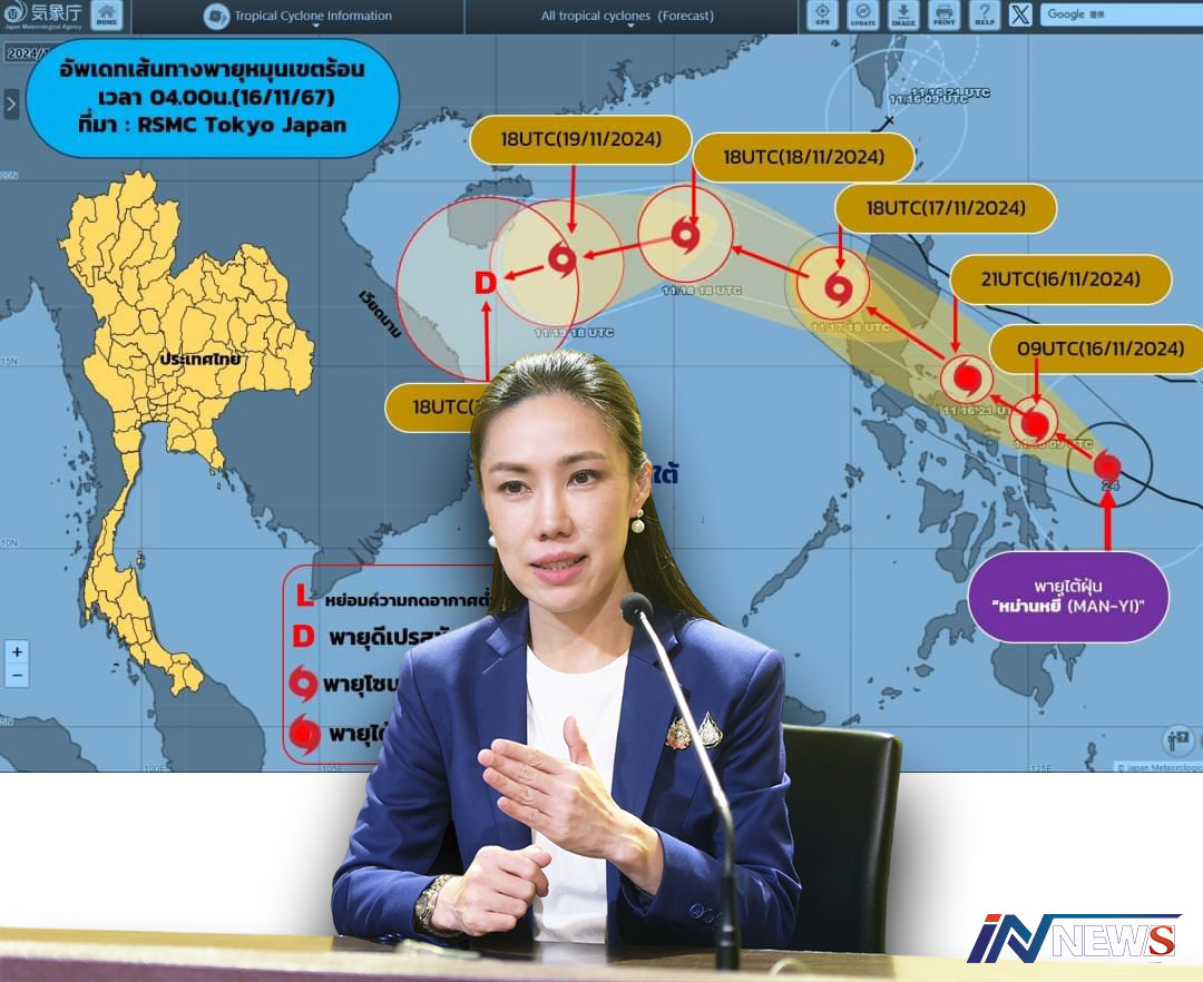 กรุงเทพฯ-ศปช. ยืนยันพายุไต้ฝุ่น "หม่านหยี่ (MAN-YI)" ไม่มีผลกระทบต่อไทย พร้อมเฝ้าระวังแหล่งน้ำขนาดใหญ่ระดับน้ำ...
