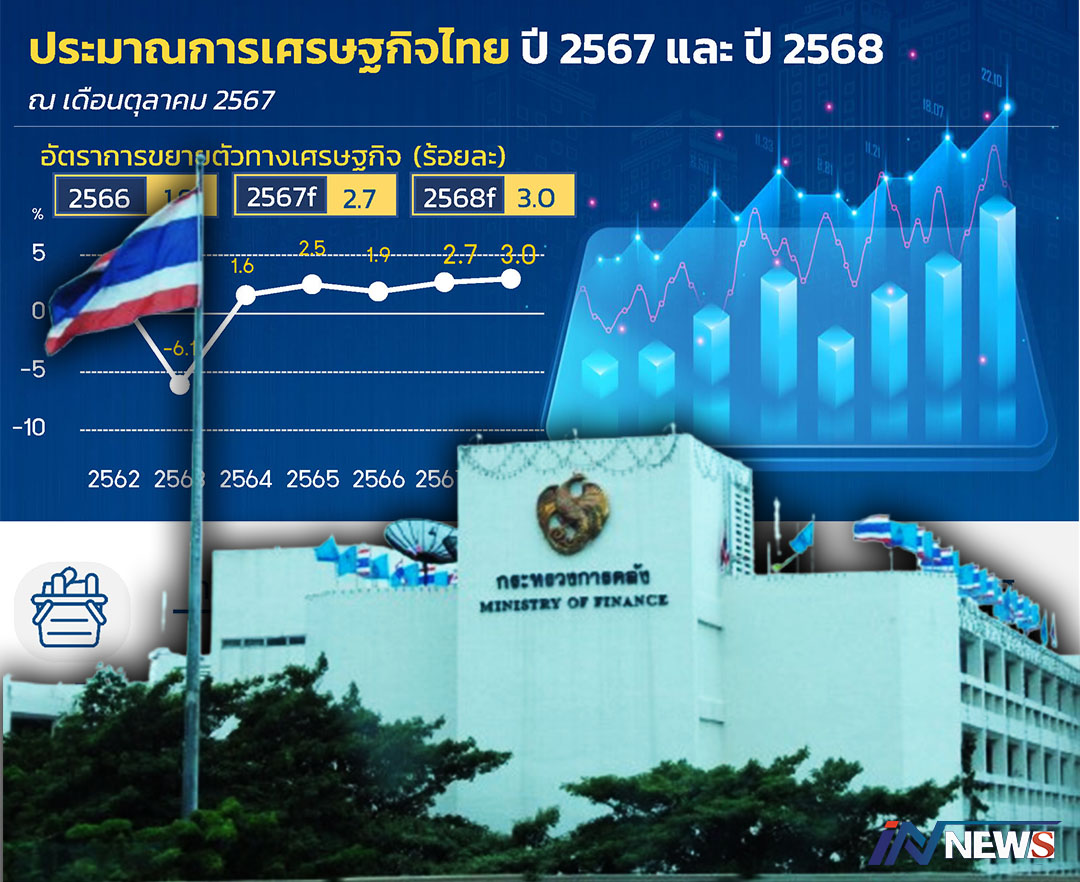 กรุงเทพฯ-“เศรษฐกิจไทยปี 2567 คาดว่าจะขยายตัวที่ร้อยละ 2.7 นำโดยการฟื้นตัวของภาคการท่องเที่ยว และภาคการส่งออกสินค้า...