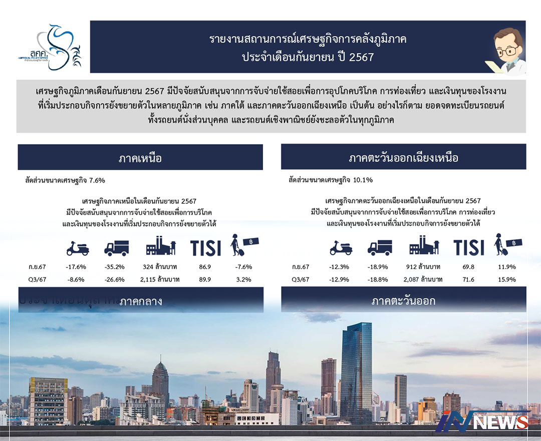 ภาวะเศรษฐกิจการคลังภูมิภาคก.ย.ปี67 'ใต้-อีสาน'แรง! 'ท่องเที่ยว-การใช้จ่าย'