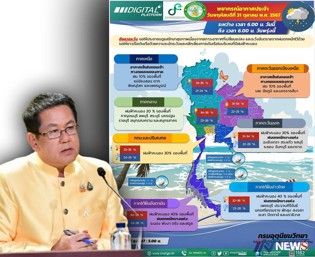 กรุงเทพฯ-ศปช. เตือนภาคใต้ 11 จังหวัด เฝ้าระวังอันตรายฝนตกหนักช่วง 2-8 พ.ย นี้ ส่วนจังหวัดภาคเหนือเตรียมรับมือกับสถานการณ...