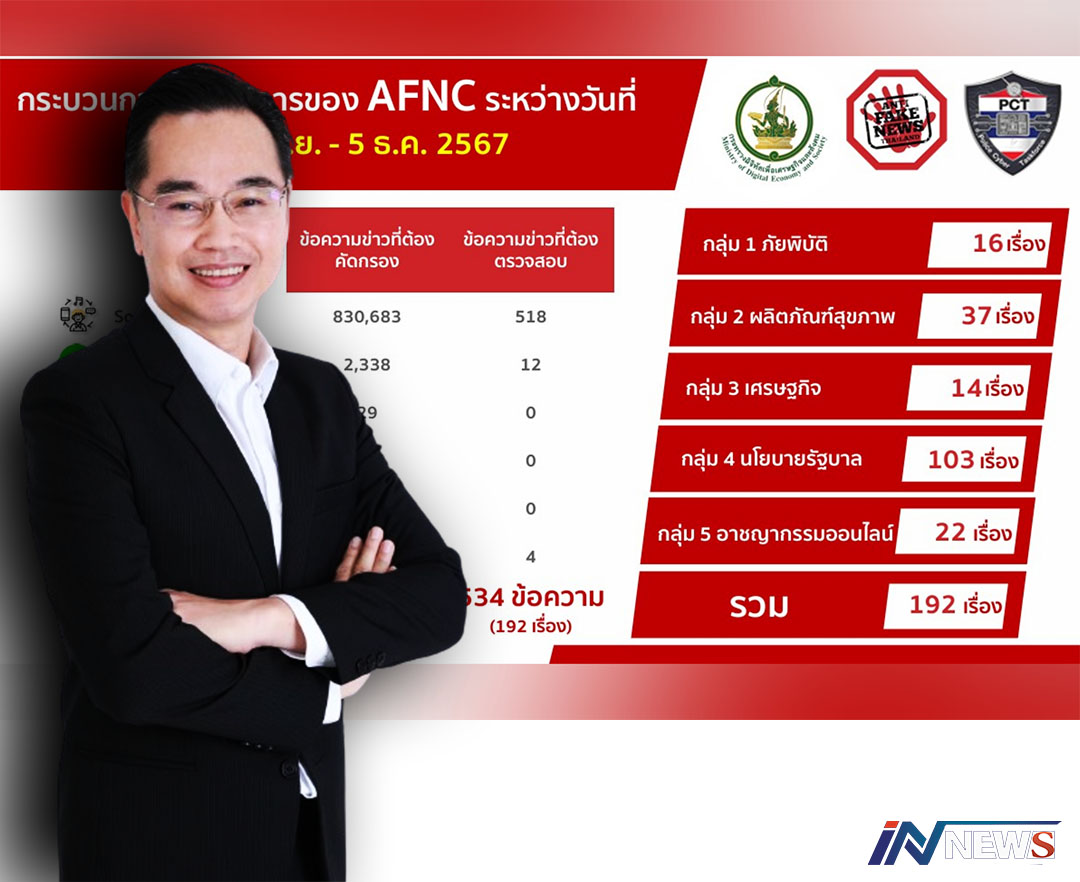 กรุงเทพฯ-กระทรวงดิจิทัลเพื่อเศรษฐกิจและสังคม (ดีอี) ตรวจพบข่าวปลอมรายสัปดาห์ ที่ประชาชนให้ความสนใจสูงสุดอันดับที่ 1 เรื่...