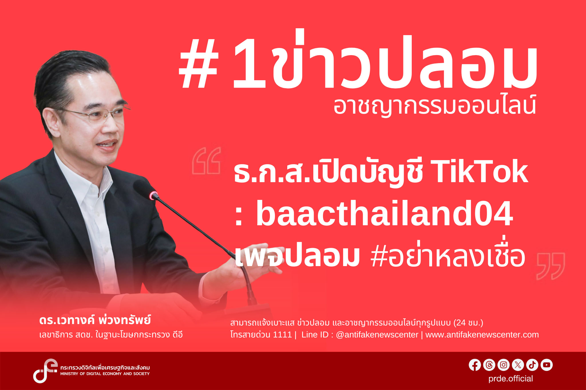 'ดีอี'เตือน'โจรออนไลน์'สร้างเพจปลอม 'ธ.ก.ส.เปิดบัญชีTikTok baacthailand04'อย่าเชื่อ-แชร์