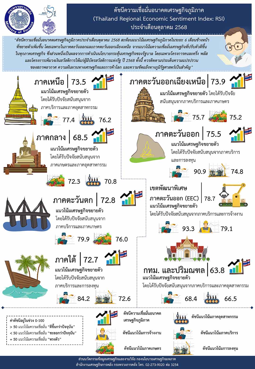 ดัชนีRSIเดือนต.ค.68สะท้อนอีกใน6เดือน 'ภาคตอ.-อีสาน'มีแนวโน้มขยายตัวเพิ่มขึ้น