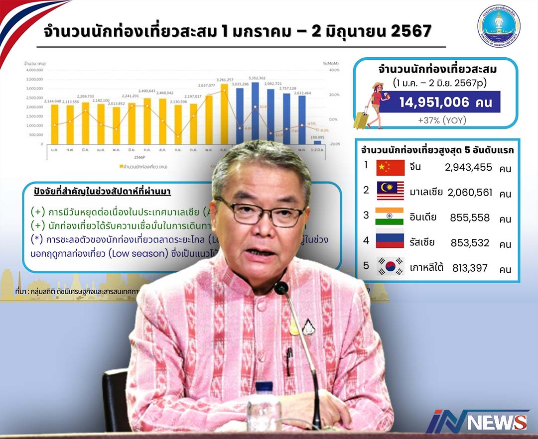 นายกฯรุกพัฒนาบุคลากรสู่'ฮับท่องเที่ยว' 5เดือนปี67ต่างชาติเที่ยวไทย14.9ล.คน