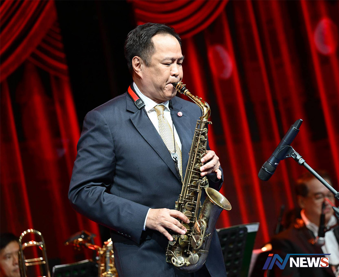 นายกฯอนุทินโชว์เป่าเครื่อง'แซกโซโฟน' เปิด'ประกวดเพลงสืบสานรักษ์เพลงไทย'