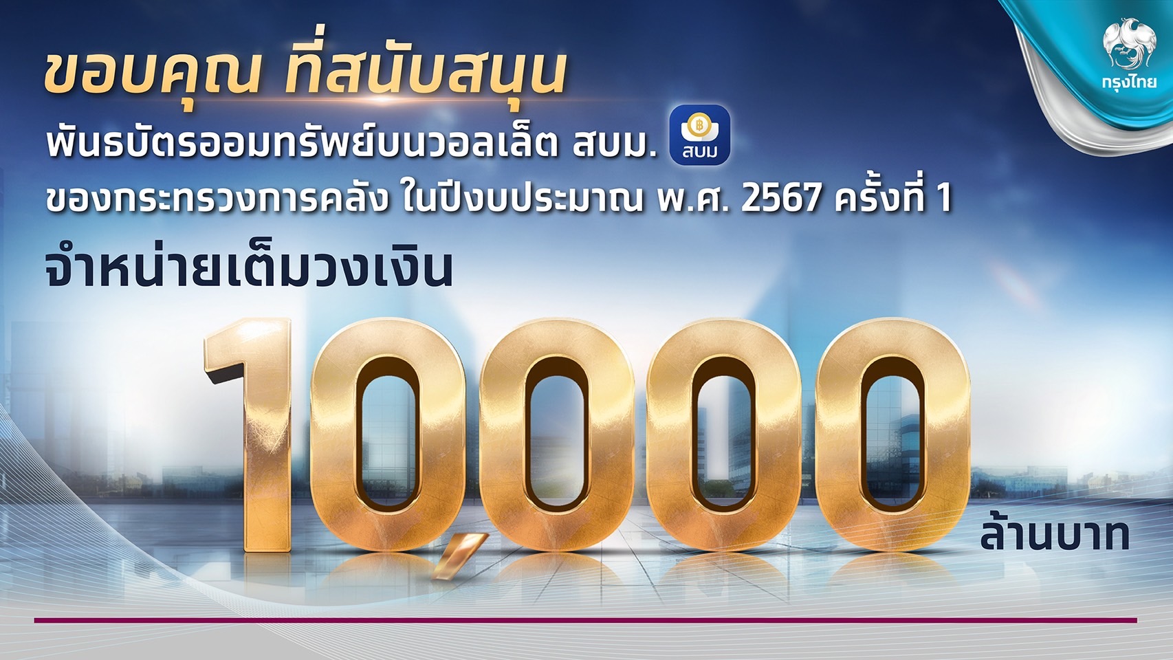 ทุบสถิติ!พันธบัตรวอลเล็ตสบม.บนเป๋าตัง จองซื้อเต็ม1หมื่นล้านบาทใน1นาที35วิ.