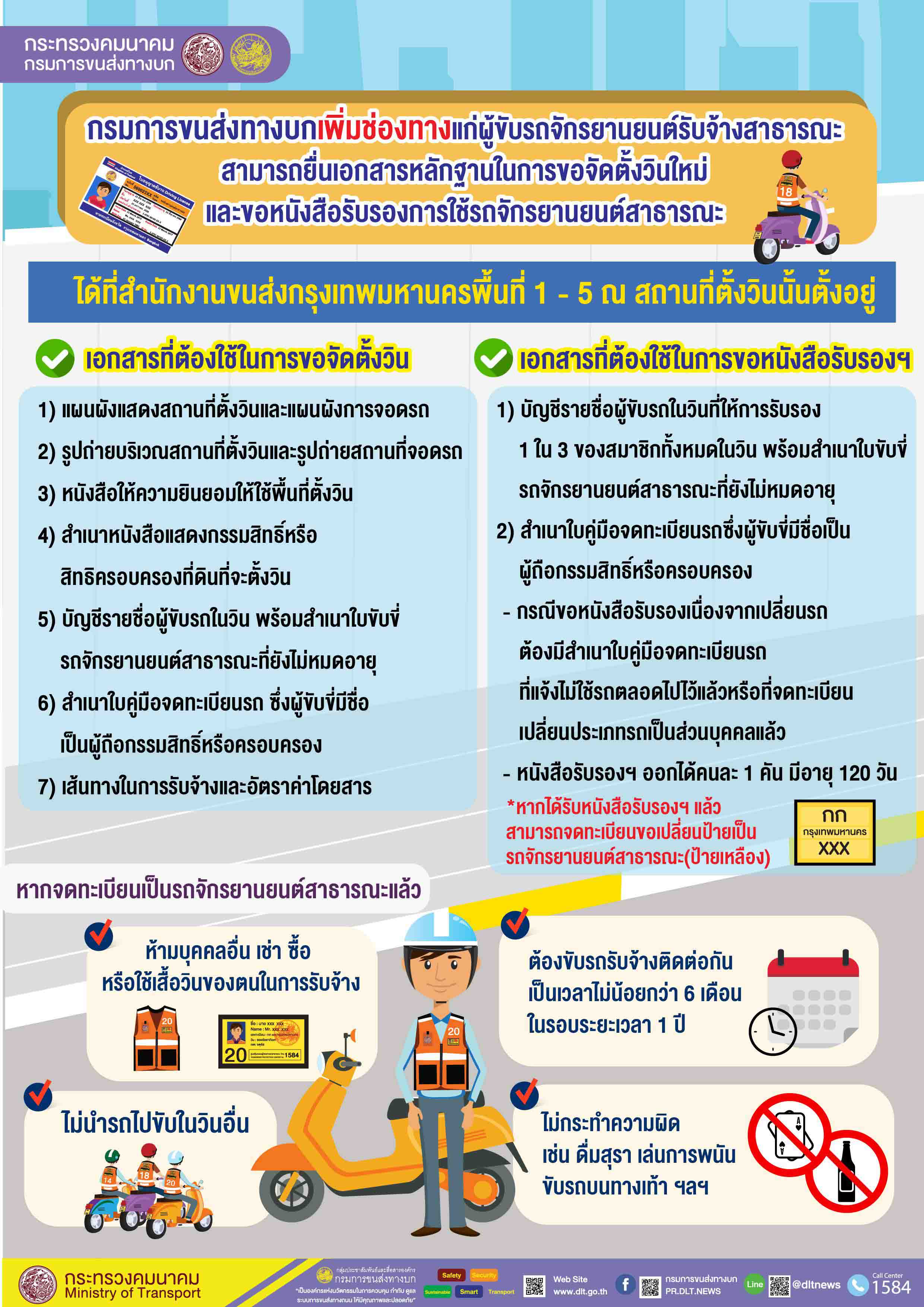 ขบ.เพิ่มช่องทางขอตั้งวินรถจยย.รับจ้าง ยื่นผ่านกรมฯส่งหรือสนข.ได้ทั้ง2ทาง