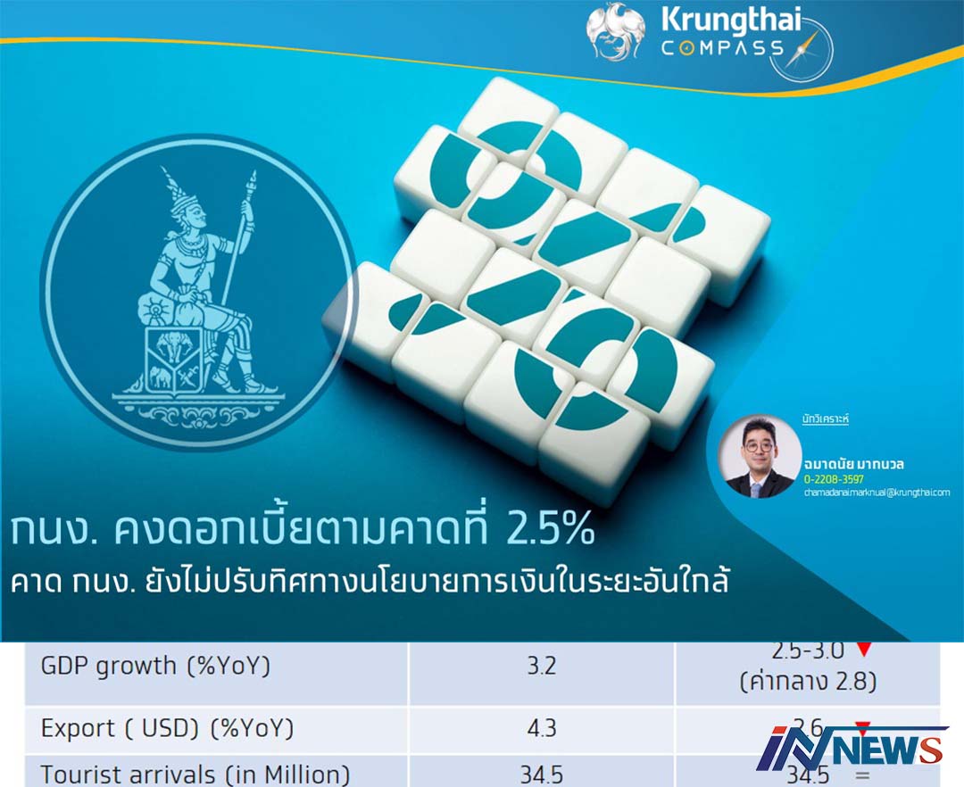 ศูนย์วิจัยกรุงไทยชี้กนง.ส่งซิกผ่อนคลาย หลังมีมติ5ต่อ2คงดอกเบีย0.25%ต่อปี