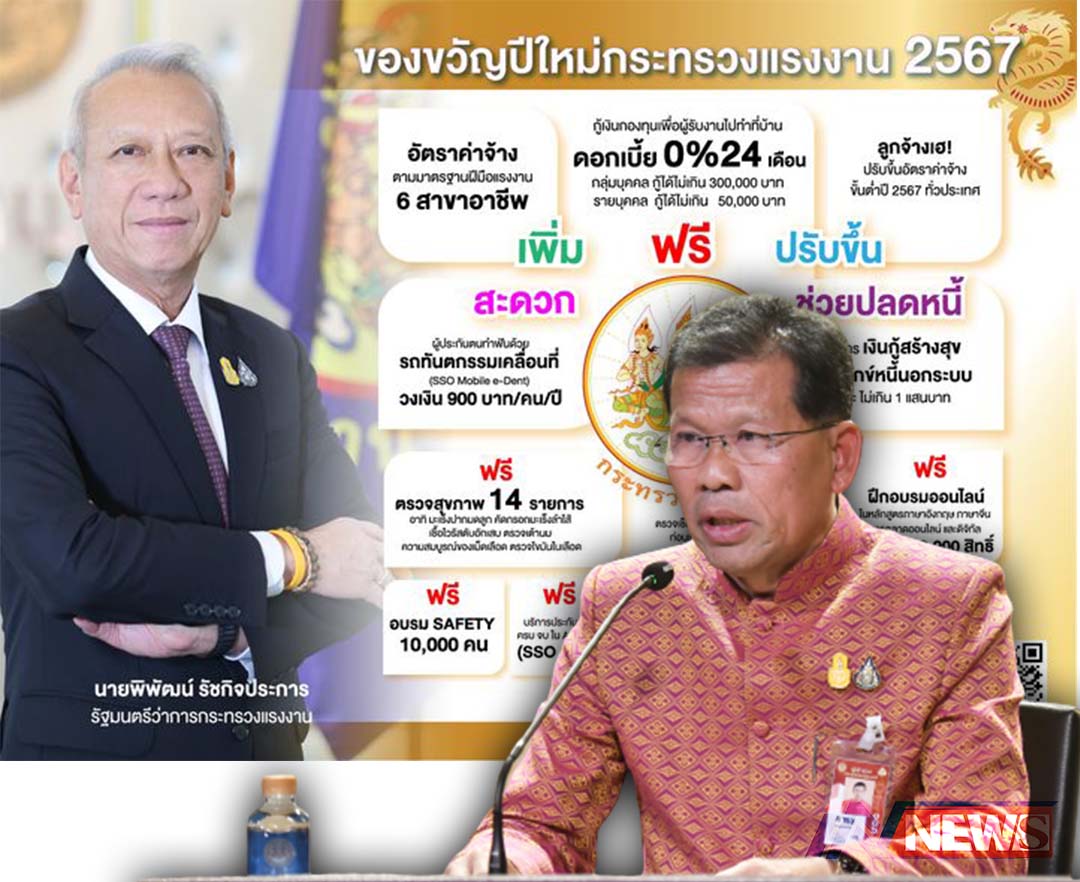 ก.แรงงานจัดเต็ม11ชิ้นของขวัญปีใหม่67 ขึ้นค่าแรง-กู้เงินทุนดอก0%-ช่วยปลดหนี้