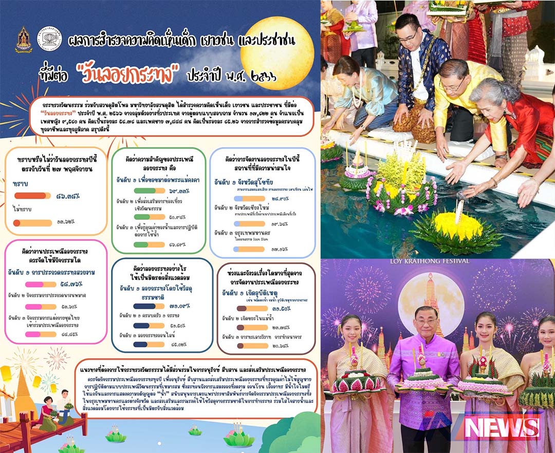 กรุงเทพฯ-วธ.ปลื้มเผยผลโพล“วันลอยกระทง” ปี 66 คนไทยร้อยละ 69.33 เห็นความสำคัญเพื่อขอขมาต่อพระแม่คงคา บู...