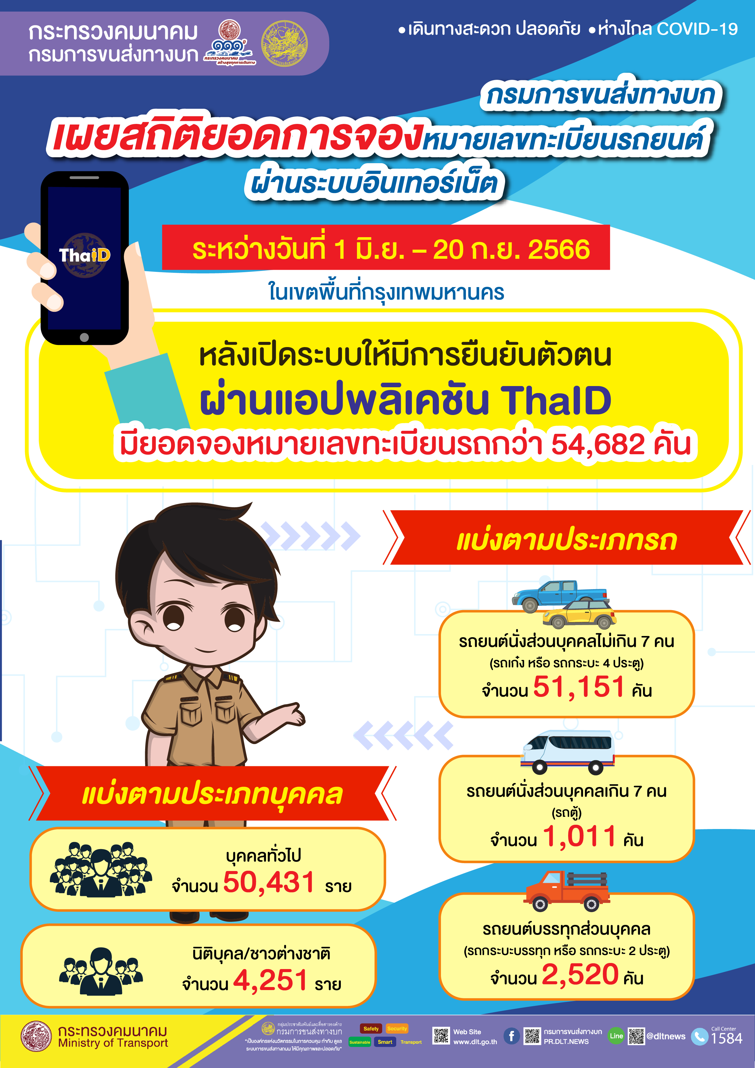 ขบ.เผยสถิติยอดจองหมายเลขรถผ่านเน็ต 1มิ.ย.-20ก.ย.66กว่า5.4หมื่นหมายเลข