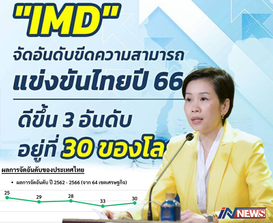 ปลื้มผลจัดอันดับความสามารแข่งขันไทย 'IMD' ปี66ขยับขึ้นที่30ดีขึ้นทุกเกณฑ์