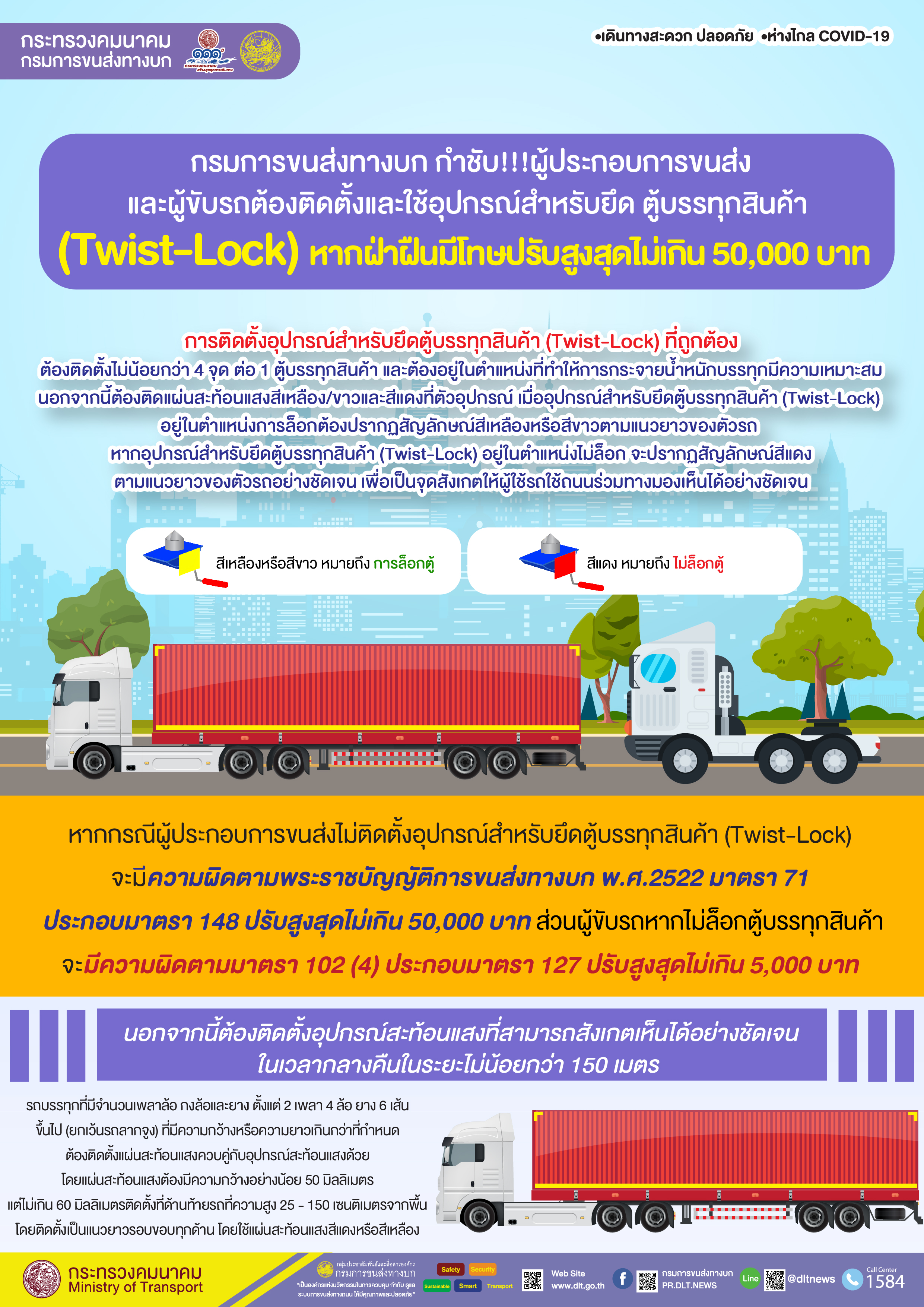 ขบ.กำชับเถ้าแก่รถขนส่งสินค้า-ผู้ขับรถ ติดตั้งตัวยึดตู้บรรทุกฝ่าฝืนปรับ5หมื่น