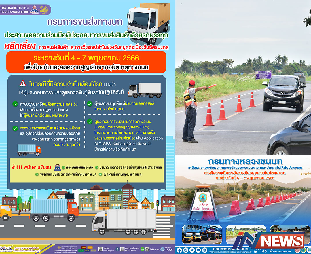 ขบ.-ทช.รับมือวันหยุดยาวช่วง4-7พ.ค.นี้ ขอรถบรรทุกหยุดวิ่ง/ดูแลความปลอดภัย