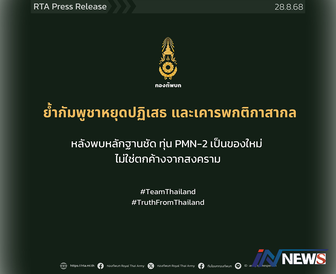 กรุงเทพฯ-ทบ.ชี้แจงพร้อมหลักฐาน วางทุ่น PMN-2 เป็นของใหม่ ไม่ใช่ตกค้างจากสงคราม จี้กัมพูชาเคารพกติกาสากล หยุดปฏิเสธ หลังพ...