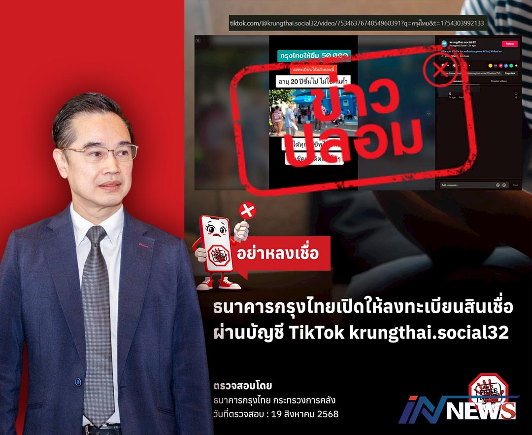 ดีอีเตือน! 'มิจฉาชีพ'เปิด'ติ๊กต๊อก'ปลอม 'ธ.กรุงไทย'ลวงยื่นกู้สินเชื่อ/ระวังสูญเงิน