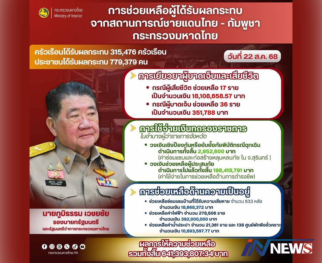 กรุงเทพฯ-“ภูมิธรรม” ย้ำ รัฐบาลไม่ทอดทิ้งประชาชน เดินหน้าช่วยเหลือชายแดนไทย-กัมพูชา เร่งเบิกจ่ายเยียวยาและฟื้...