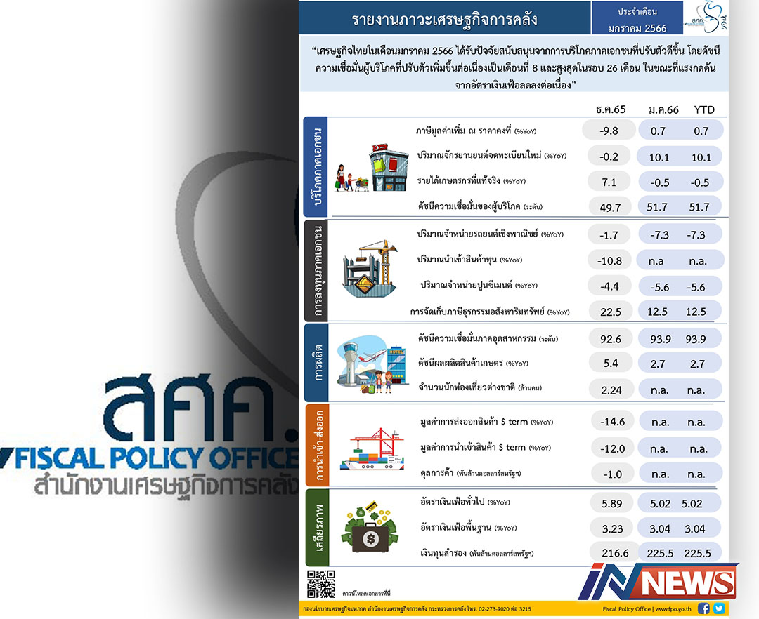ชี้ภาวะเศรษฐกิจการคลังประจำม.ค.2566 ความเชื่อมั่นผู้บริโภคพุ่งสูงสุดใน26เดือน