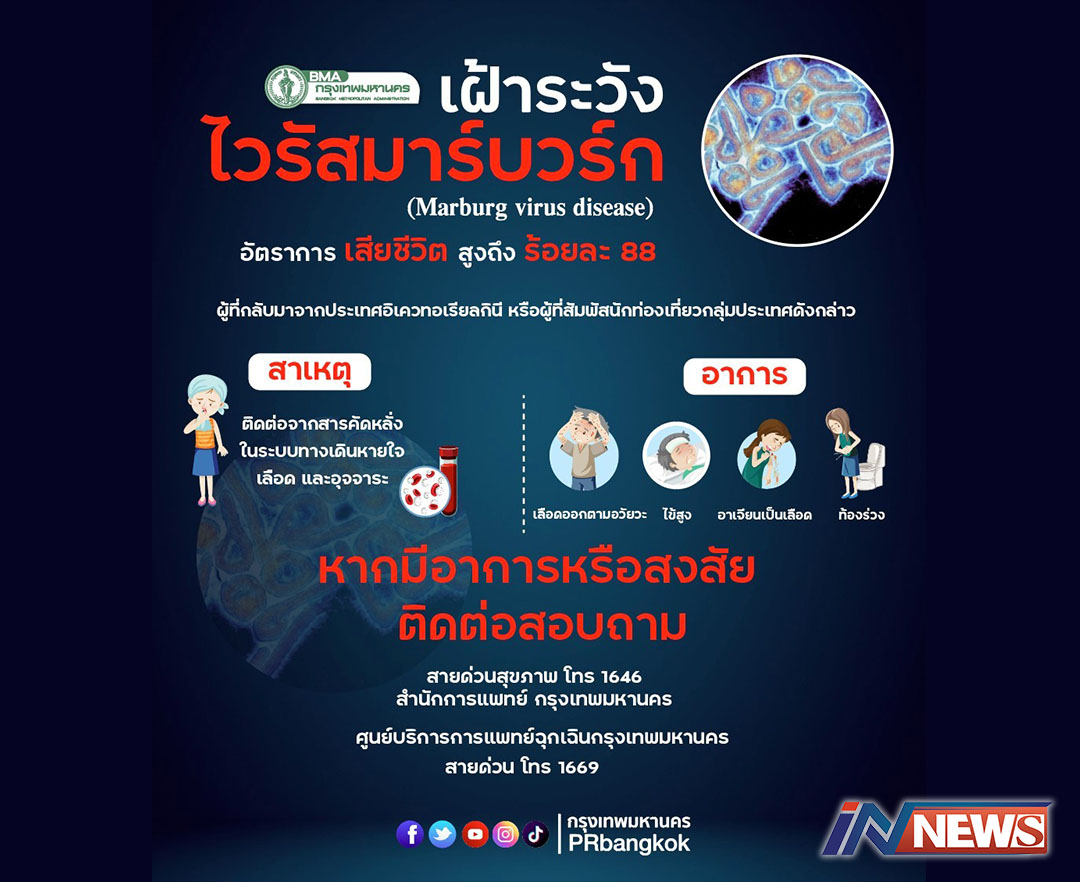 กทม.สั่งเตรียมพร้อมติดตามการเฝ้าระวัง โรคติดเชื้อไวรัสมาร์บวร์ก