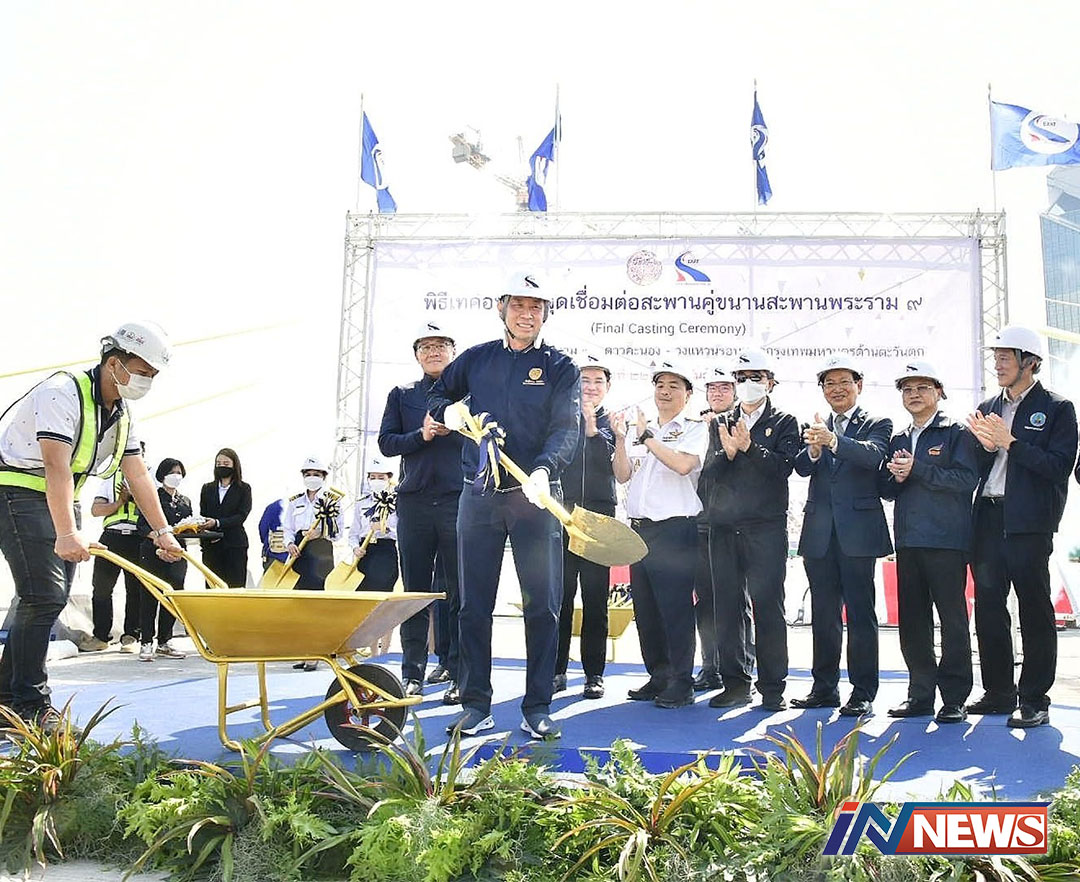 เชื่อมแล้ว!สะพานคู่ขนานสะพานพระราม9 'ศักดิ์สยาม'เทปูนเองกับมือสู่วงแหวนตต.