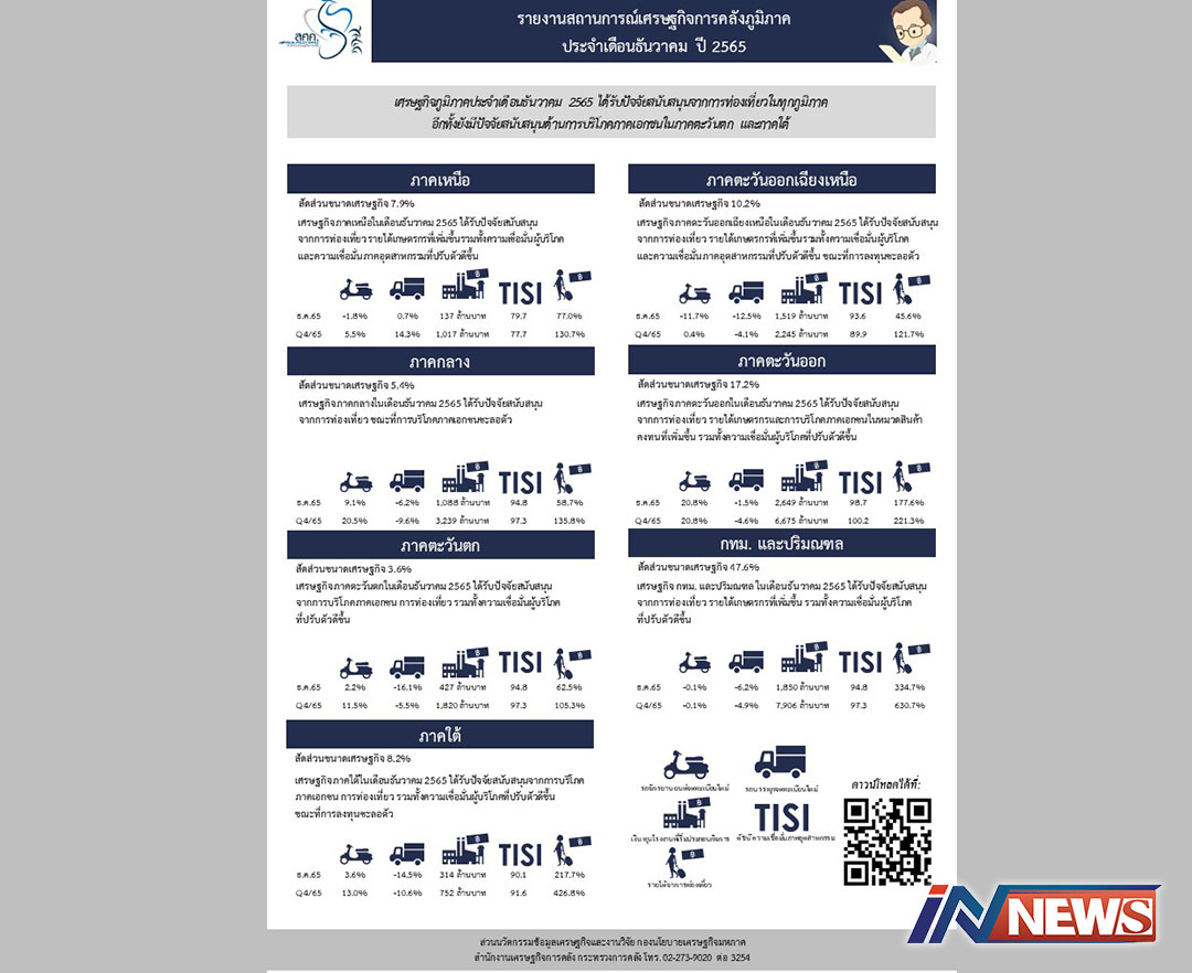 ภาวะเศรษฐกิจการคลังภูมิภาคธ.ค.ปี65 การท่องเที่ยกระตุ้นศก.4ภาคพุ่งพรวด