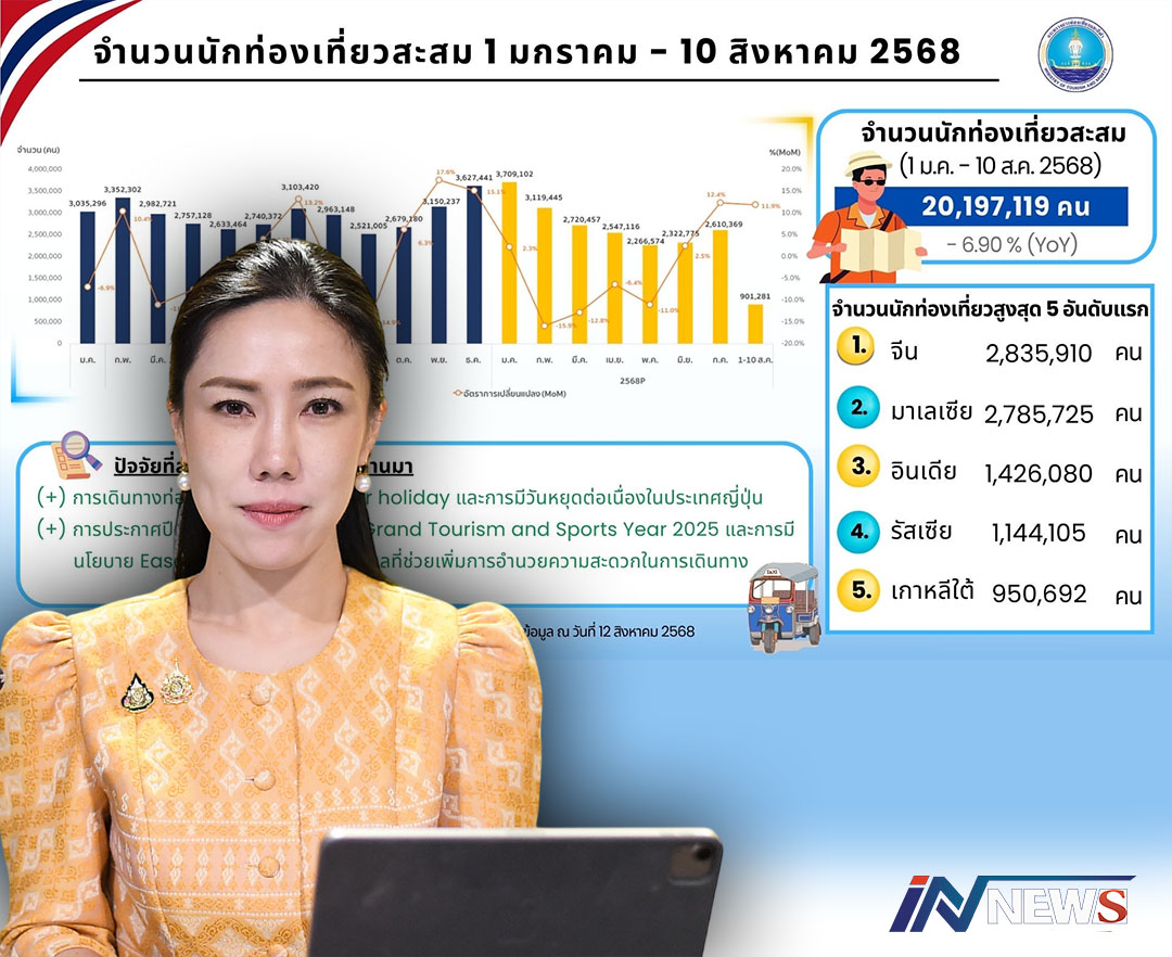 กรุงเทพฯ-เที่ยวไทย.ยังปัง..!! นักท่องเที่ยว ต่างชาติไม่กังวลข้อพิพาทไทยกัมพูชา ตัวเลขทะลุเป้าเพิ่มขึ้นในทุกกลุ่มตลาดท่อง...