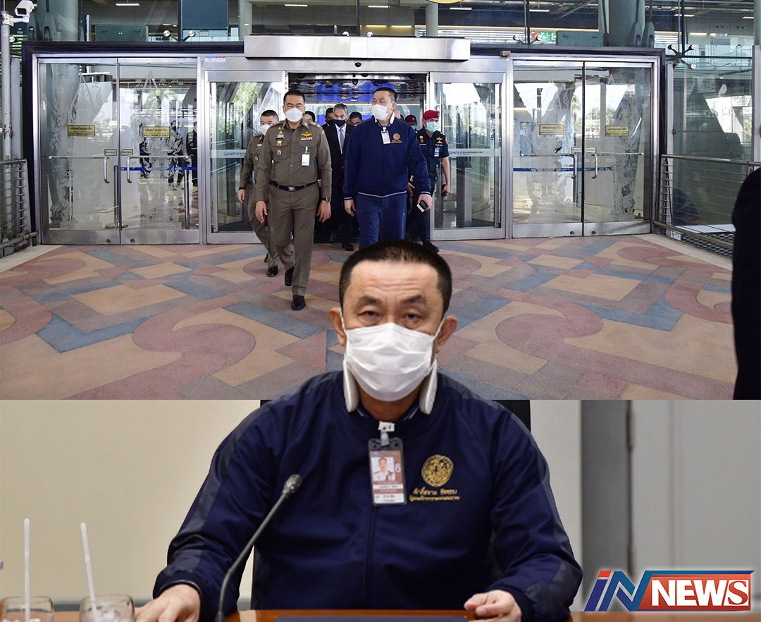 สมุทรปราการ-นายศักดิ์สยาม ชิดชอบ รัฐมนตรีว่าการกระทรวงคมนาคม ตรวจเยี่ยมการเตรียมความพร้อมการให้บริการผู้โดยสารขาเข้าและข...