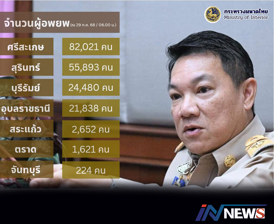 กรุงเทพฯ-ปลัด มท. เผย ยอดประชาชนผู้อพยพ 7 จังหวัดชายแดนไทย-กัมพูชา 1.88 แสนคน ใน 770 ศูนย์ พร้อมสั่งการผู้ว่าฯ นายอำเภอ ...