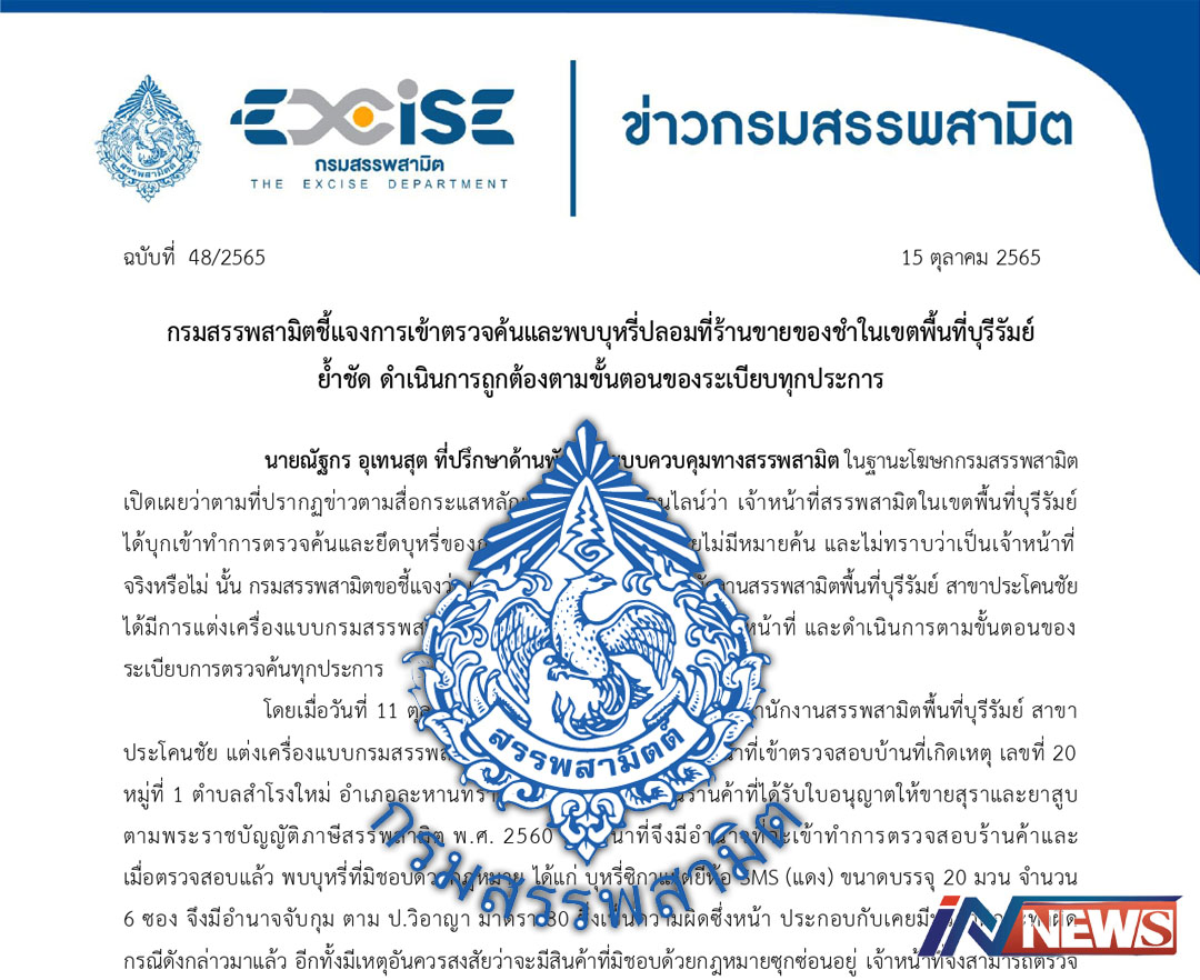 กรุงเทพฯ-ตามที่ปรากฏข่าวตามสื่อกระแสหลักและสื่อสังคมออนไลน์ว่า เจ้าหน้าที่สรรพสามิตในเขตพื้นที่บุรีรัมย์ได้บุกเข้าทำการต...