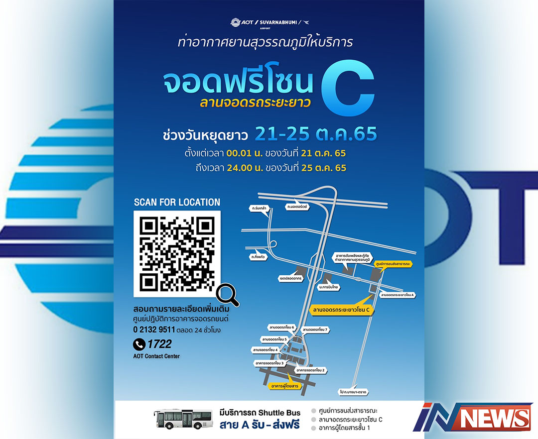 สนามบินสุวรรณภูมิเปิดลานจอดรถฟรี5วัน รับช่วงหยุดยาววันปิยะ21-25ต.ค
