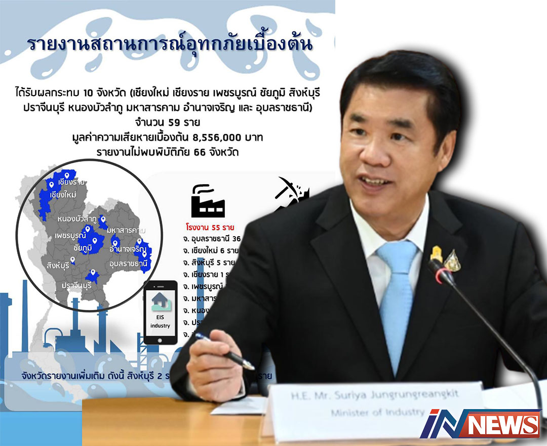 'สุริยะ'ติดตามน้ำท่วมโรงงานใน10จังหวัด เผยเสียหายแล้ว59รายเฉพาะรง.ถึง55แห่ง