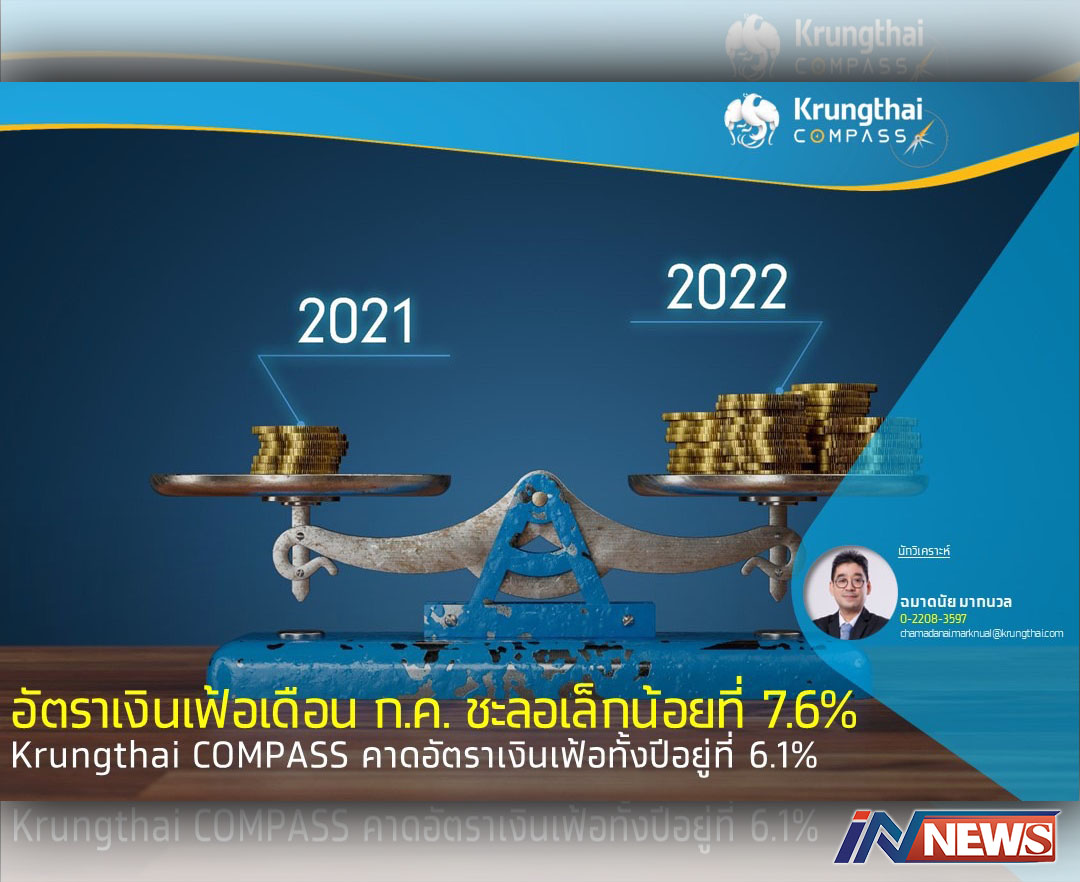 กรุงไทยรายงานอัตราเงินเฟ้อเดือนกค.65 ชะลอตัวลงแตะระดับ7.6%จากเดิม7.7%