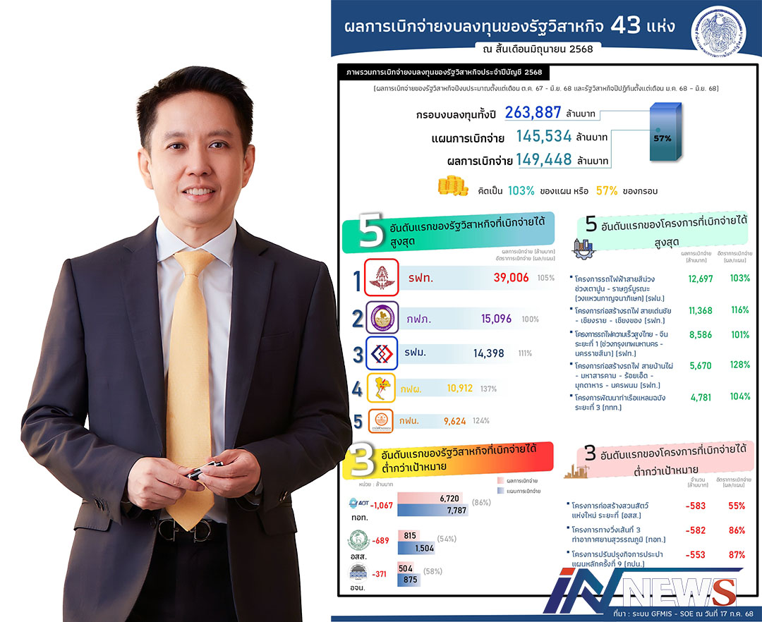 สคร.เร่งเบิกจ่ายงบลงทุนของรัฐวิสาหกิจ ช่วยกระตุ้นศก.43แห่งปี68คิดเป็น103%