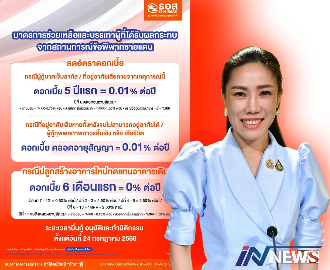 กรุงเทพฯ-รัฐบาล มอบ “ธอส. ”เปิดมาตรการพิเศษ ดอกเบี้ยต่ำแค่ 0.01% ดูแลช่วยเหลือ ผู้ประสบเหตุชายแดนไทยกัมพูชา
