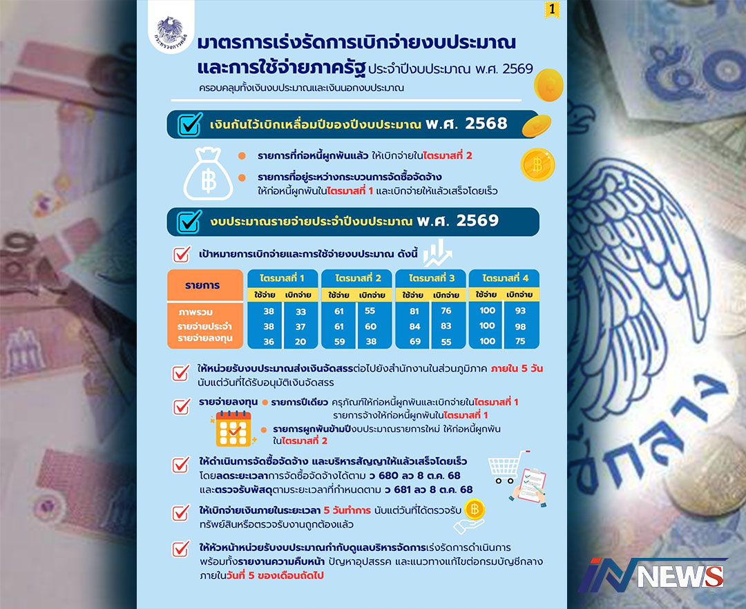 คลังกำหนดมาตรการเร่งการเบิกจ่ายงบฯ การใช้จ่ายภาครัฐปี69กระตุ้นเศรษฐกิจ