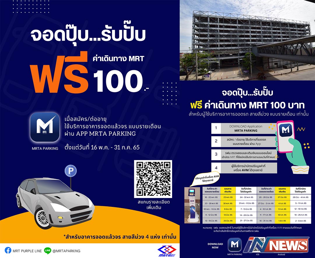 รฟม.จัด'จอดปุ๊บรับปั๊บ'ฟรีค่าค่ารถ100บ. แก่ผู้สมัคร/ต่ออายุที่จอดรถสายสีม่วง